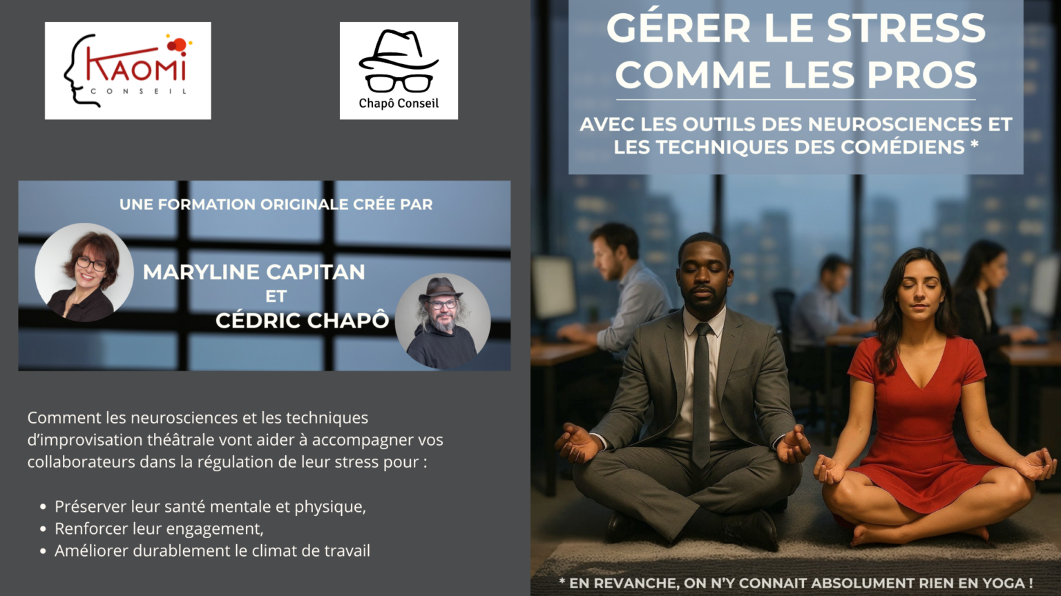 Et si les neurosciences et les techniques d’improvisation théâtrales vous aidaient à accompagner vos collaborateurs dans la régulation de leur stress pour :